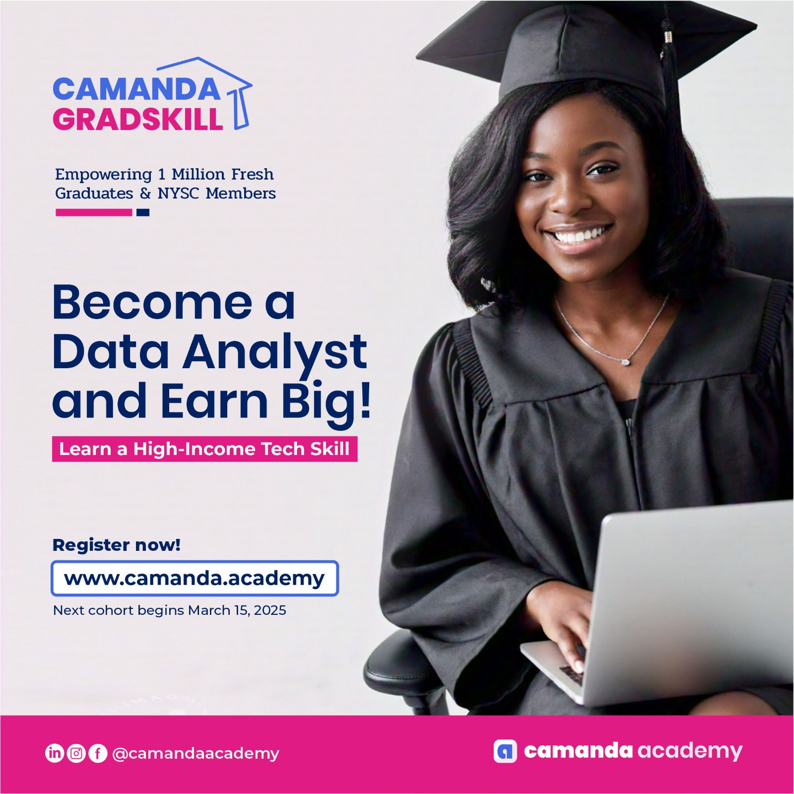 Gradskill data analytics program for graduates and NYSC members, and Data analytics for professionals both start on 15th March 2025. Ensure you register before then.